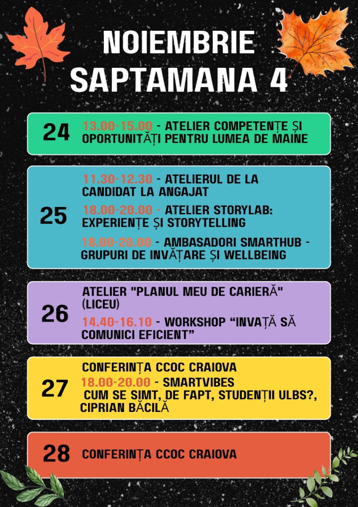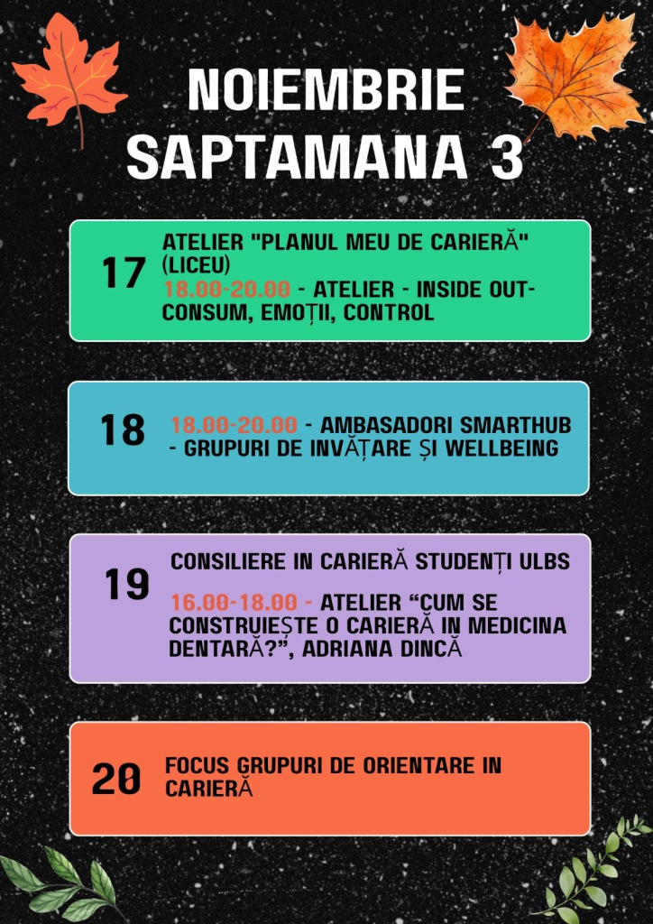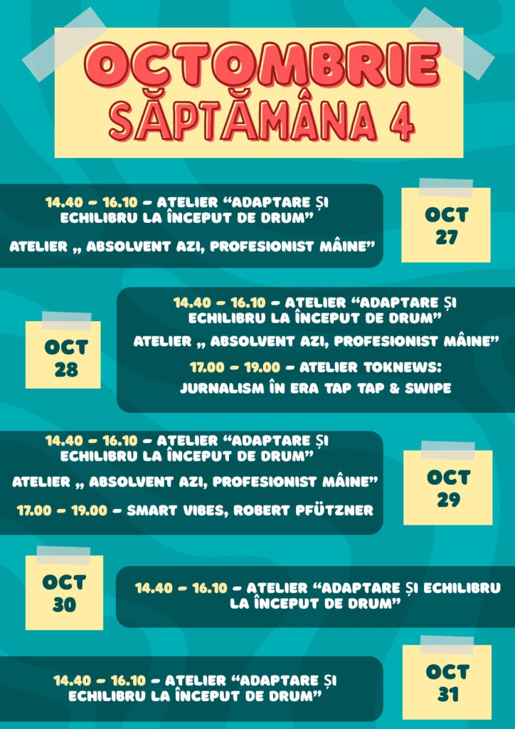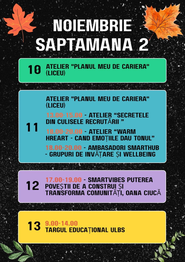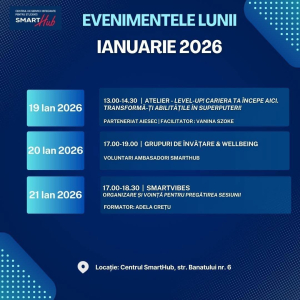 Pentru înscrierea la atelierele, activitățile și serile informale organizate în cadrul Centrului SmartHub, urmăriți paginile noastre de socializare.